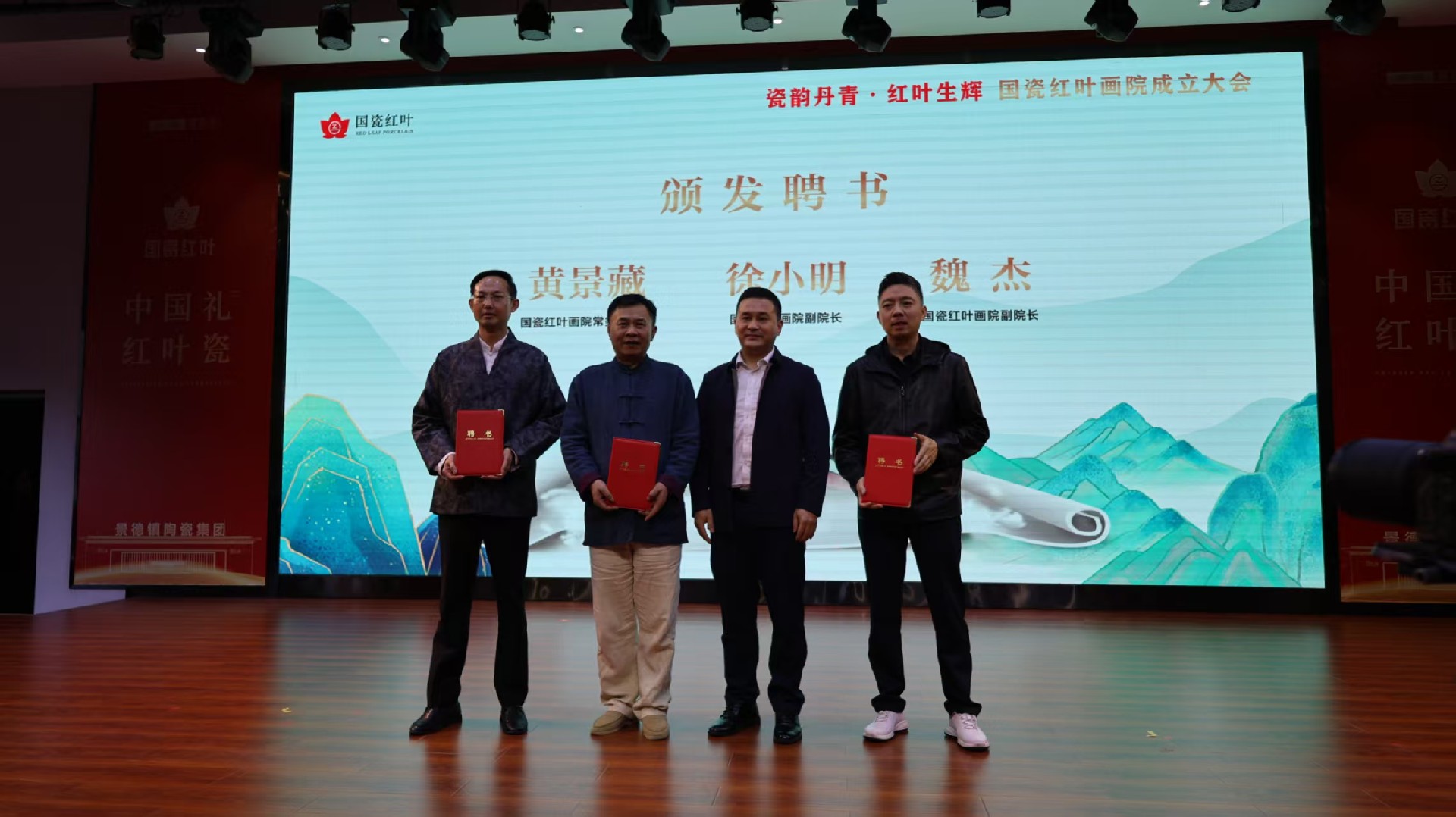成立大會上,與會嘉賓共同觀看了國瓷紅葉畫院宣傳片,現(xiàn)場頒發(fā)了畫院聘書,并完成了與北京天壇文化產(chǎn)業(yè)有限公司、嗶哩嗶哩虛擬偶像業(yè)務(wù)部的合作簽約儀式。