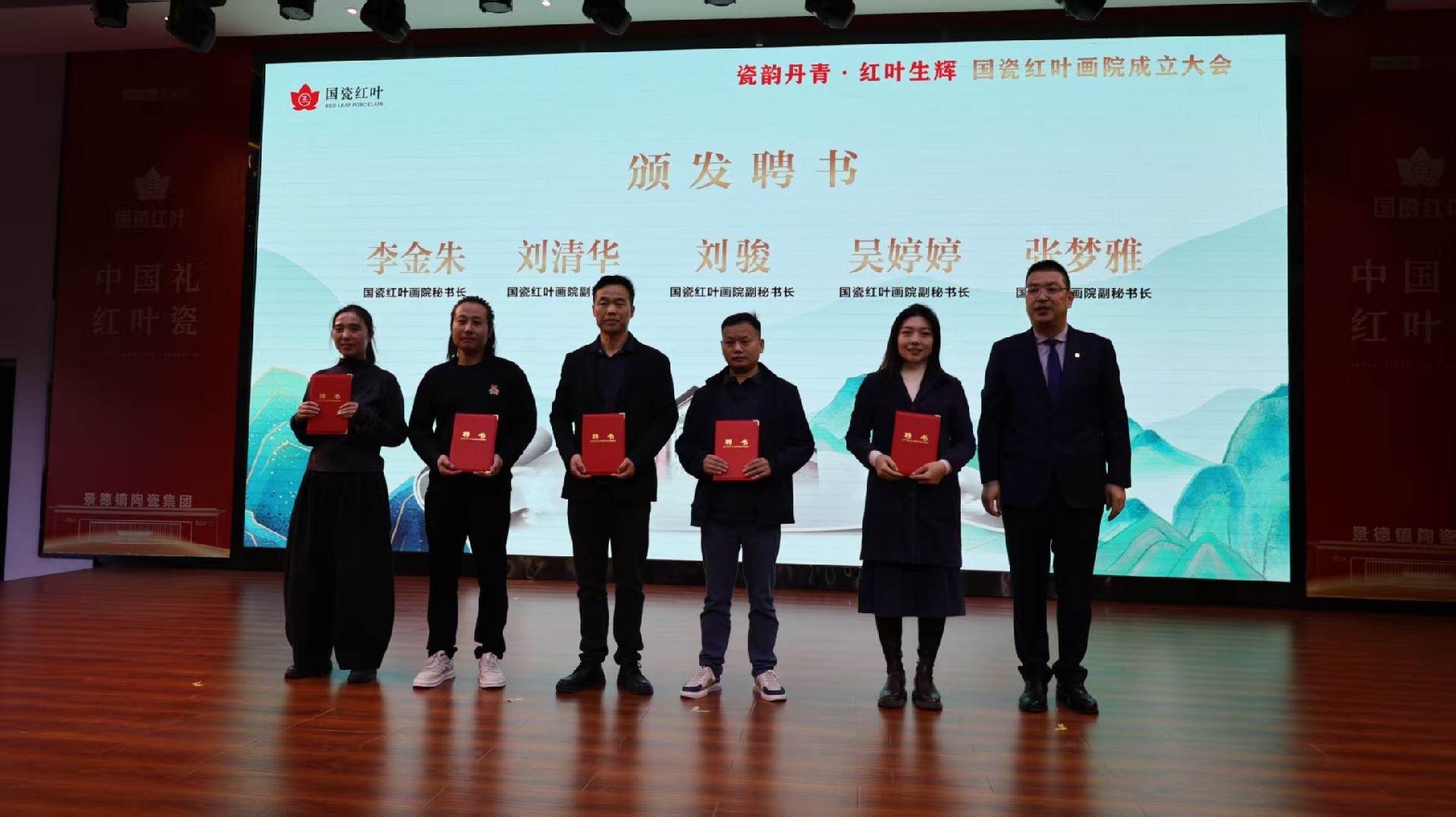 瓷都盛會話傳承,紅葉溢彩繪新篇。11月9日上午,景德鎮(zhèn)陶瓷集團旗下國瓷紅葉畫院成立大會在紅葉陶瓷國瓷館隆重舉行。江西省輕工業(yè)聯(lián)合會理事長鄭正春,景德鎮(zhèn)市政府黨組成員、昌南新區(qū)黨工委書記余立新,景德鎮(zhèn)陶瓷研究院黨組書記、院長吳浪,江西陶瓷工藝美院黨委委員、副院長朱輝球,江西省輕工業(yè)聯(lián)合會秘書長崔軍,景德鎮(zhèn)陶瓷協(xié)會秘書長陳華清,中國工藝美術(shù)大師劉偉,中國工藝美術(shù)大師黃景藏,景德鎮(zhèn)陶瓷大學(xué)設(shè)計藝術(shù)學(xué)院院長余劍峰,景德鎮(zhèn)學(xué)院陶瓷美術(shù)與設(shè)計藝術(shù)學(xué)院黨委書記陳后輝,市工信局副局長朱成,市昌南新區(qū)黨工委委員、管委會副主任張英,景德鎮(zhèn)新聞傳媒集團副總經(jīng)理丁添,北京天壇文化產(chǎn)業(yè)有限公司CEO王莎莎,嗶哩嗶哩Vsinger業(yè)務(wù)部—市場總監(jiān)劉冰潔及景德鎮(zhèn)陶瓷集團領(lǐng)導(dǎo)班子等領(lǐng)導(dǎo)和嘉賓出席大會。