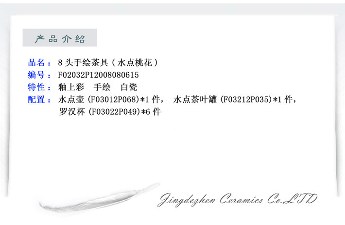 8頭手繪茶具(水點(diǎn)桃花)