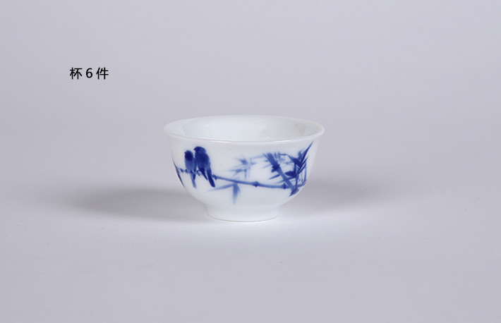 8頭青花斗彩功夫茶具水點桃花