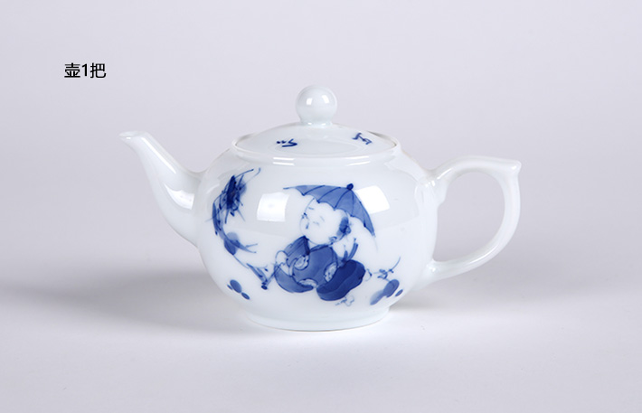 8頭青花斗彩功夫茶具水點(diǎn)桃花