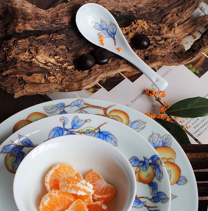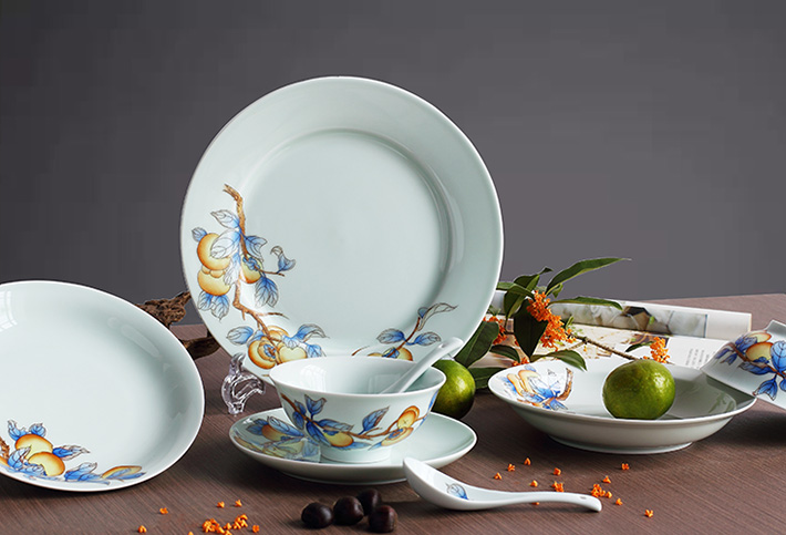 36頭青釉手繪中餐具--事事如意