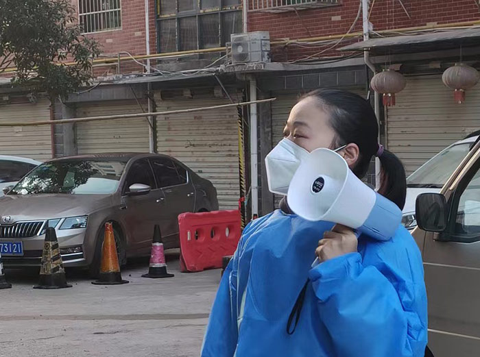 在這場沒有硝煙的戰(zhàn)“疫”中,邵建華與邵燕翎既是父女,更是“戰(zhàn)友”。父親每日在現(xiàn)場維持秩序,女兒每天拿著喇叭挨家挨戶的督促居民下樓做核酸,幫助老年人出示核酸碼等工作。父女倆各盡其責(zé)、互相鼓勵、并肩作戰(zhàn),用最樸實(shí)的行動筑牢疫情防線,他們和大家一樣,希望通過共同努力,早日戰(zhàn)勝這場疫情阻擊戰(zhàn)。