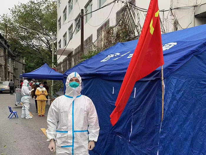社區(qū)“雙報到”,抗疫顯擔(dān)當(dāng)。疫情來襲,黨員穿上“大白”防護(hù)服、做好秩序維護(hù)、發(fā)放健康檢測表、信息錄入、政策宣傳、掃碼查驗、上門進(jìn)行采集核酸……。在各管控小區(qū),黨員志愿者們的身影,一直在為小區(qū)居民們辛苦地付出著。“我們都是小區(qū)業(yè)主,又都黨員志愿者,在這種特殊時刻更要挺身而出,體現(xiàn)作為黨員的本分,在危難時刻顯擔(dān)當(dāng)。根據(jù)防疫工作安排,每天的工作時長都不固定,但我們每天都從半夜工作到凌晨。我們社區(qū)大家的配合度都很高,整個小區(qū)情況比較平穩(wěn),我們覺得能夠在疫情防控工作貢獻(xiàn)一些力量感到很開心?!蔽S狼逭f道。