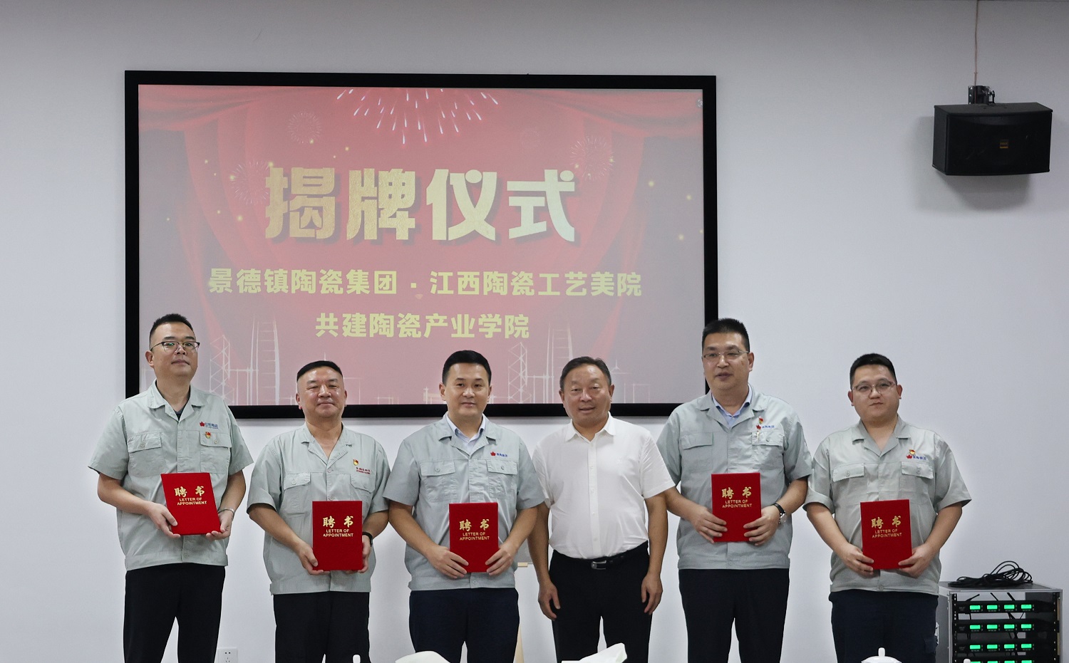 為深入貫徹落實國家推進“一體兩翼”重大戰(zhàn)略部署,更好地服務地方陶瓷產(chǎn)業(yè)發(fā)展,助推陶瓷職業(yè)教育發(fā)展。8月16日下午,在景德鎮(zhèn)陶瓷集團行政樓一樓會議室隆重舉行江西陶瓷工藝美術職業(yè)技術學院與景德鎮(zhèn)陶瓷集團共建陶瓷產(chǎn)業(yè)學院揭牌儀式。江西陶瓷工藝美術職業(yè)技術學院黨委書記方文龍,黨委委員、副院長朱輝球,景德鎮(zhèn)陶瓷集團黨委書記、董事長鄧景揚,黨委副書記、總經(jīng)理邢浩,黨委委員、工會主席鄧必春,黨委委員胡軼,黨委委員、副總經(jīng)理王小勤出席揭牌儀式。學院及企業(yè)相關部門負責人參加。